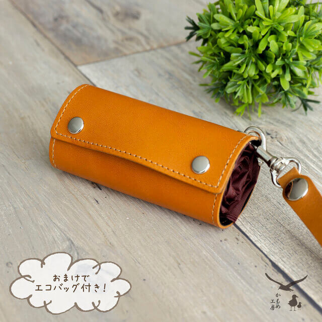 こちらはイタリアンオイルレザーを用いて作られているエコバッグホルダーです。