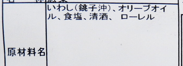原材料は、いわし(銚子沖)、オリーブオイル、食塩、清酒、ローレルのみ。シンプルですね。