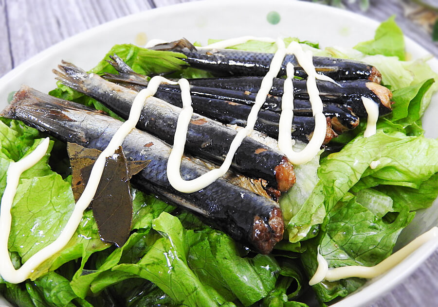 「お魚サラダとしても、相性が良さそうな気がする!」と思い、レタスの上に「銚子沖産いわしのオリーブオイルサーディン」をトッピングし、マヨネーズで味付けしてみました。