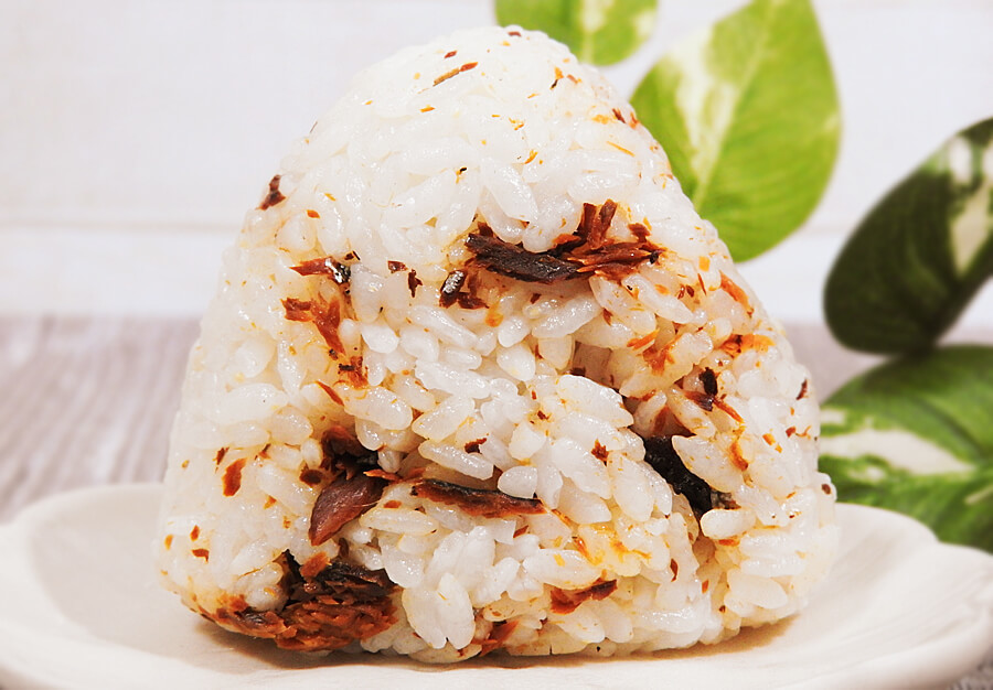「ごはんのお供としてもいいけど、おにぎりの具材にするのもありなのでは?」と思い、「銚子沖産おかかいわし」と炊きたての白米を混ぜて、さんかくおにぎりを作ってみました。