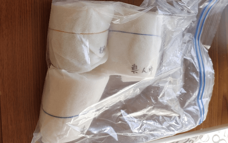 切り分けたものをそれぞれキッチンペーパーや、ラップ、湿った新聞紙などで丁寧に包みます。
