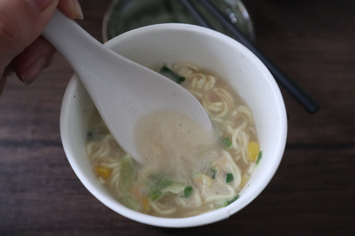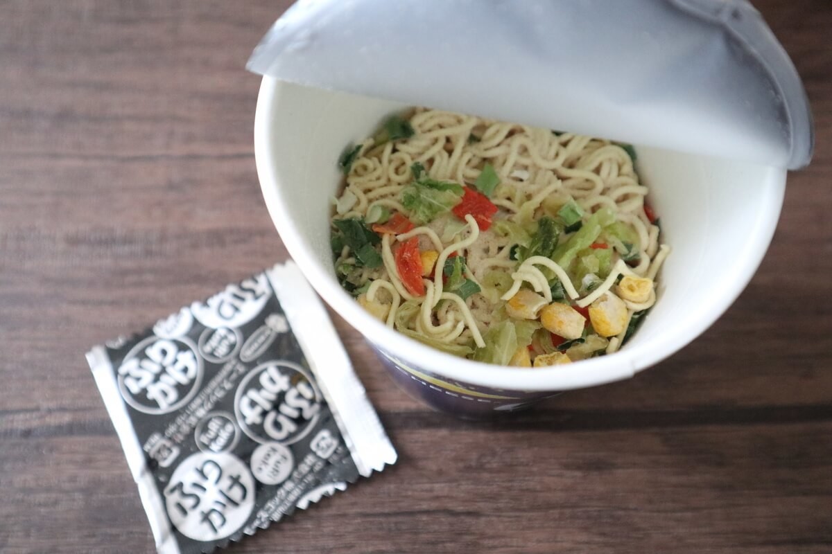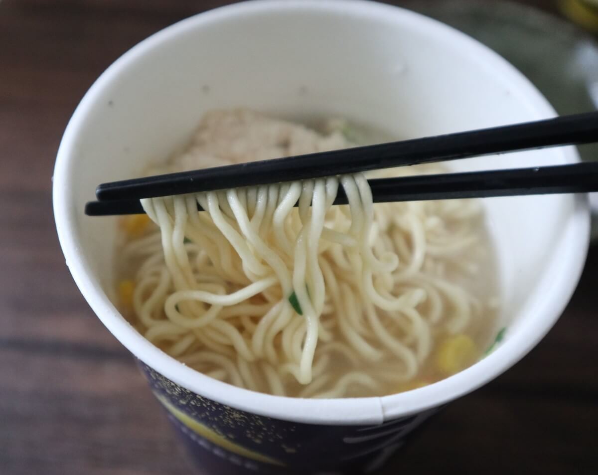 麺もフライ麺なのに、食感がよく美味しかったです。歯切れのいい麺です。 コシがある方が好きなので、表示時間より30秒ほど早めに食べ始めたというのもよかったと思います。