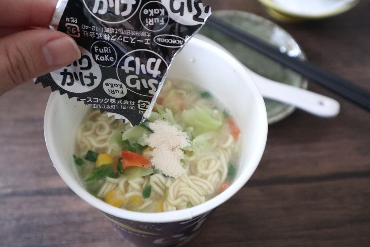 かやくとキャベツ、人参、コーン、ねぎが入っています。