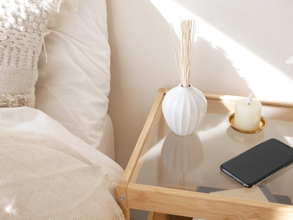 コンパクトなので置き場所を選びません。枕元のナイトテーブル上にも◎。 丸みを帯びたフォルムは寝室のリラックス空間にもピッタリ。 お気に入りの香りとともに深呼吸し、1日の疲れを吐き出してみてくださいね。
