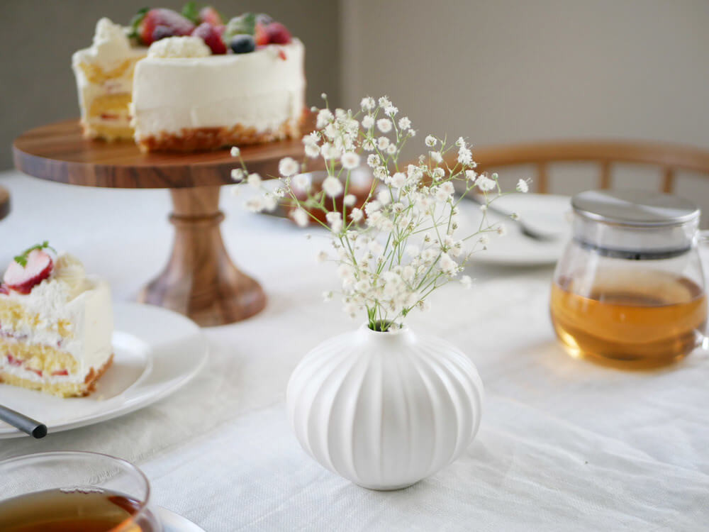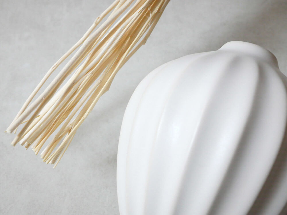 白く清楚なベースはお花を飾るのにも最適な色合いで、どんなインテリアにも静かに馴染みます。活用性もインテリア性も万能な器で香りも見た目も長く楽しんでみてくださいね。