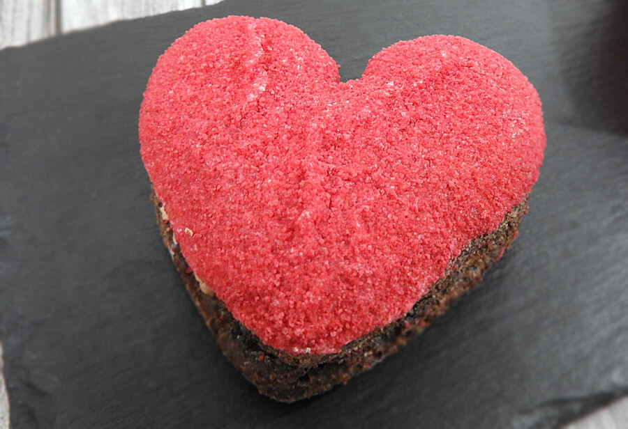 「デニッシュショコラ フランボワーズ」は、ピンクでかわいらしいハート型。ココア風味のデニッシュ生地にガナッシュホイップとフランボワーズフィリングを挟んでいます。表面はザクザク食感のフランボワーズシュガーです。