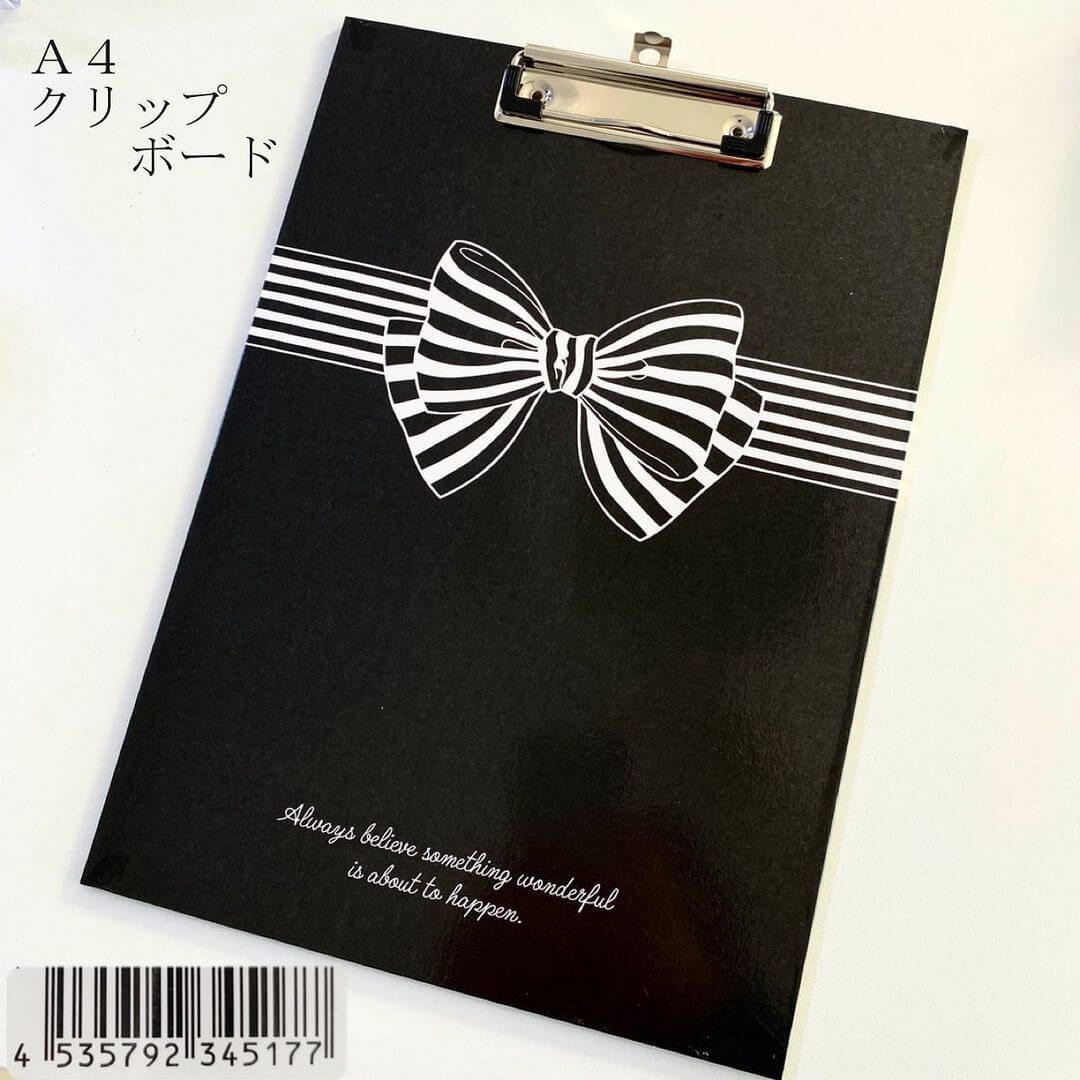 A4サイズのクリップボード。ブラックとホワイトの2色使いなので甘いデザインになりすぎず、だけどしっかりリボンが強調されている可愛すぎるアイテムです。