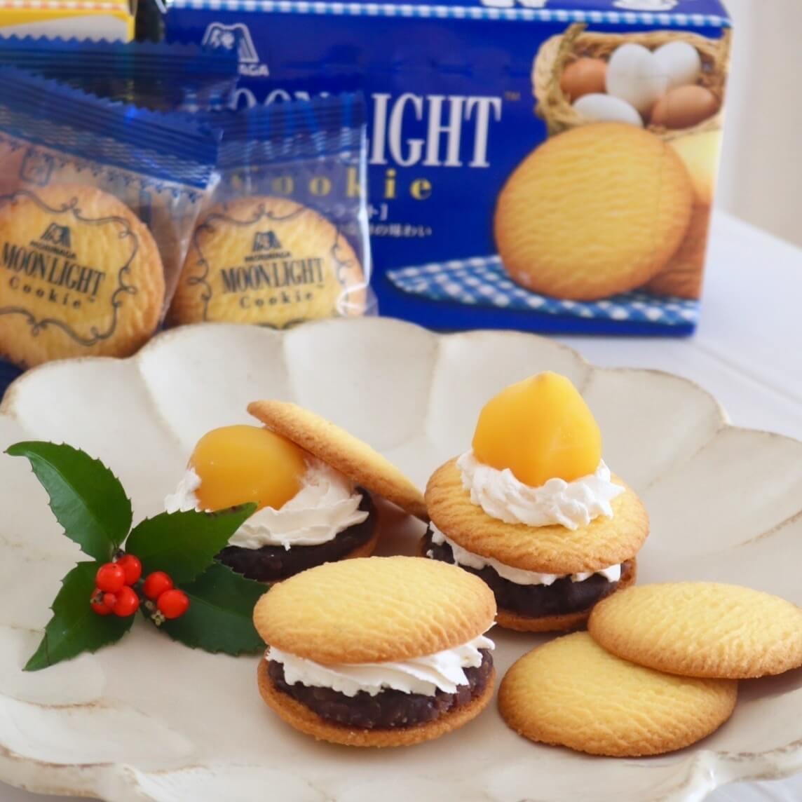「ムーンライト」の卵とバターの素材が持つ、ほのかな甘みが、和風のスイーツと合うと思いました。さくっとした軽い歯ざわりで、餡やクリームと食感の相性も抜群です。(@mokomelo_さん)