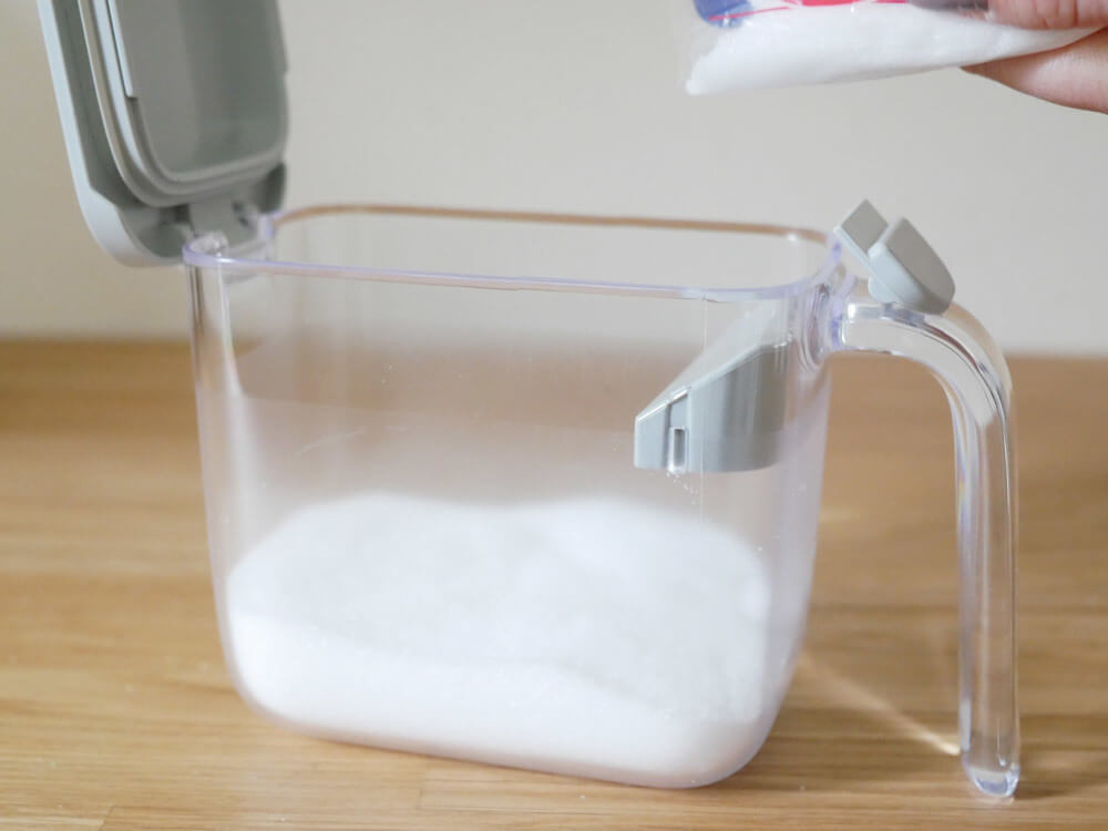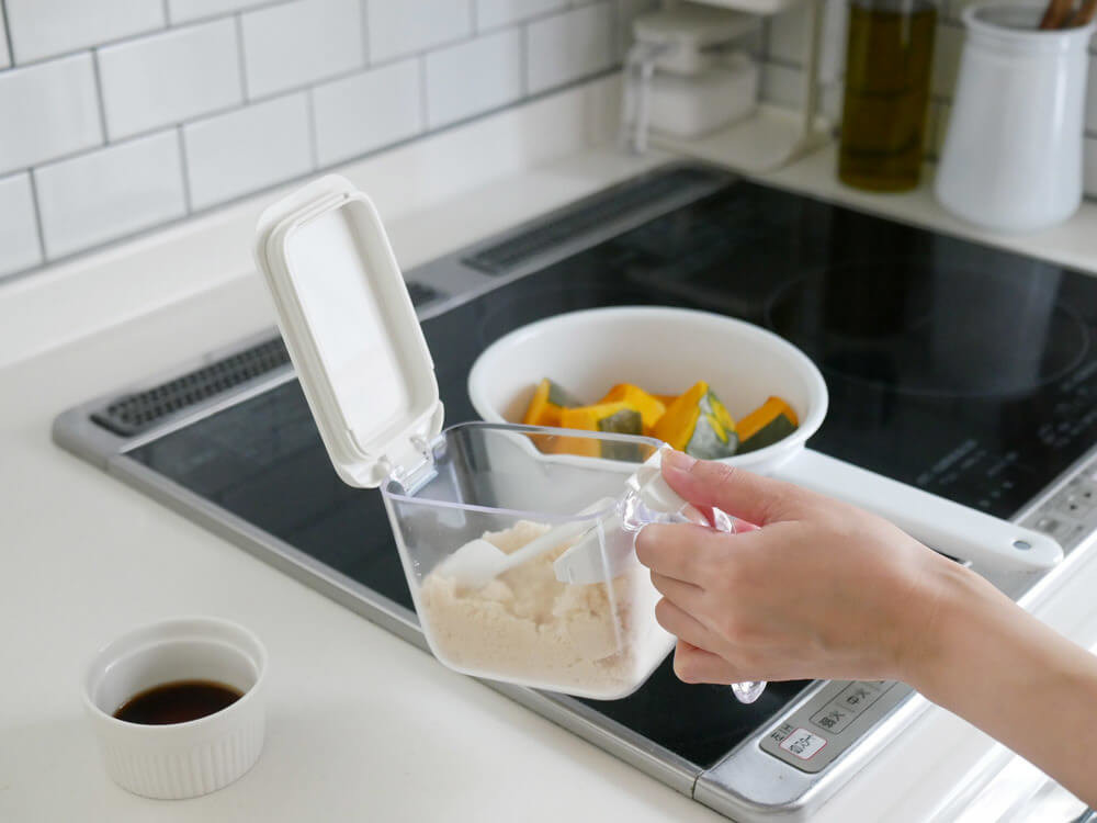 すり切り板付きワンタッチオープンのストレスフリー「調味料ポット」
