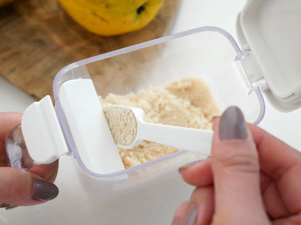 付属の小さじ1(5ml)のスプーンを使い、かんたんに量れます。