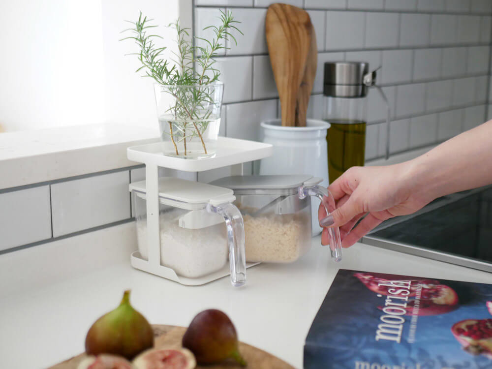シンプルで高見えなルックスや同シリーズのラックなどもあり、収納風景もキレイに。魅力満載の調味料入れでお料理タイムがもっとスムーズになりますよ♪