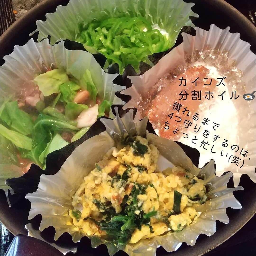 @az___126さんも購入したこのホイルは、時短調理が可能で4種類のおかずをフライパン1つで同時に作れる優れもの。