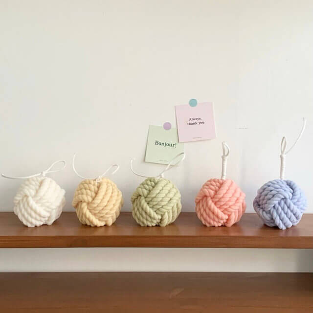 ふわふわの毛玉をイメージして作られたウールキャンドルは、本物そっくり!淡いカラーが可愛すぎて、どのカラーにするか迷っちゃうかも!?手のひらサイズでコロンとしたキャンドルなので、色違いで揃えてもおしゃれですよ。