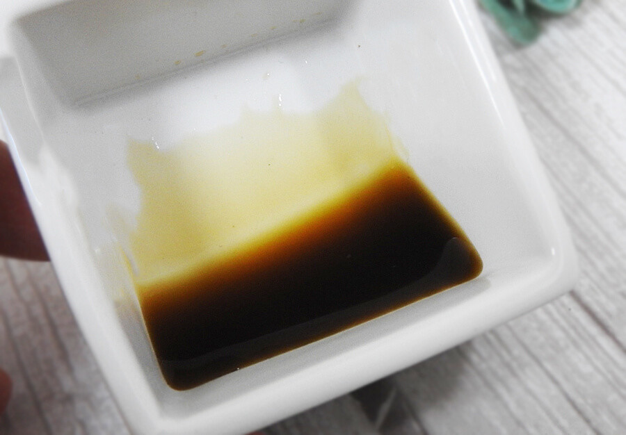 お皿に出してみると、ほのかににんにくの香りがします。独特な磯の香りはなく、思わず「これって"のりドレッシング"だったよね?」とラベルを確認してしまうほど。