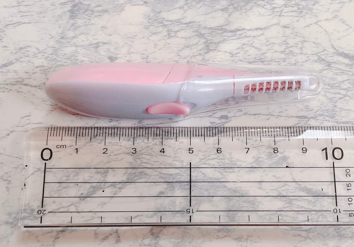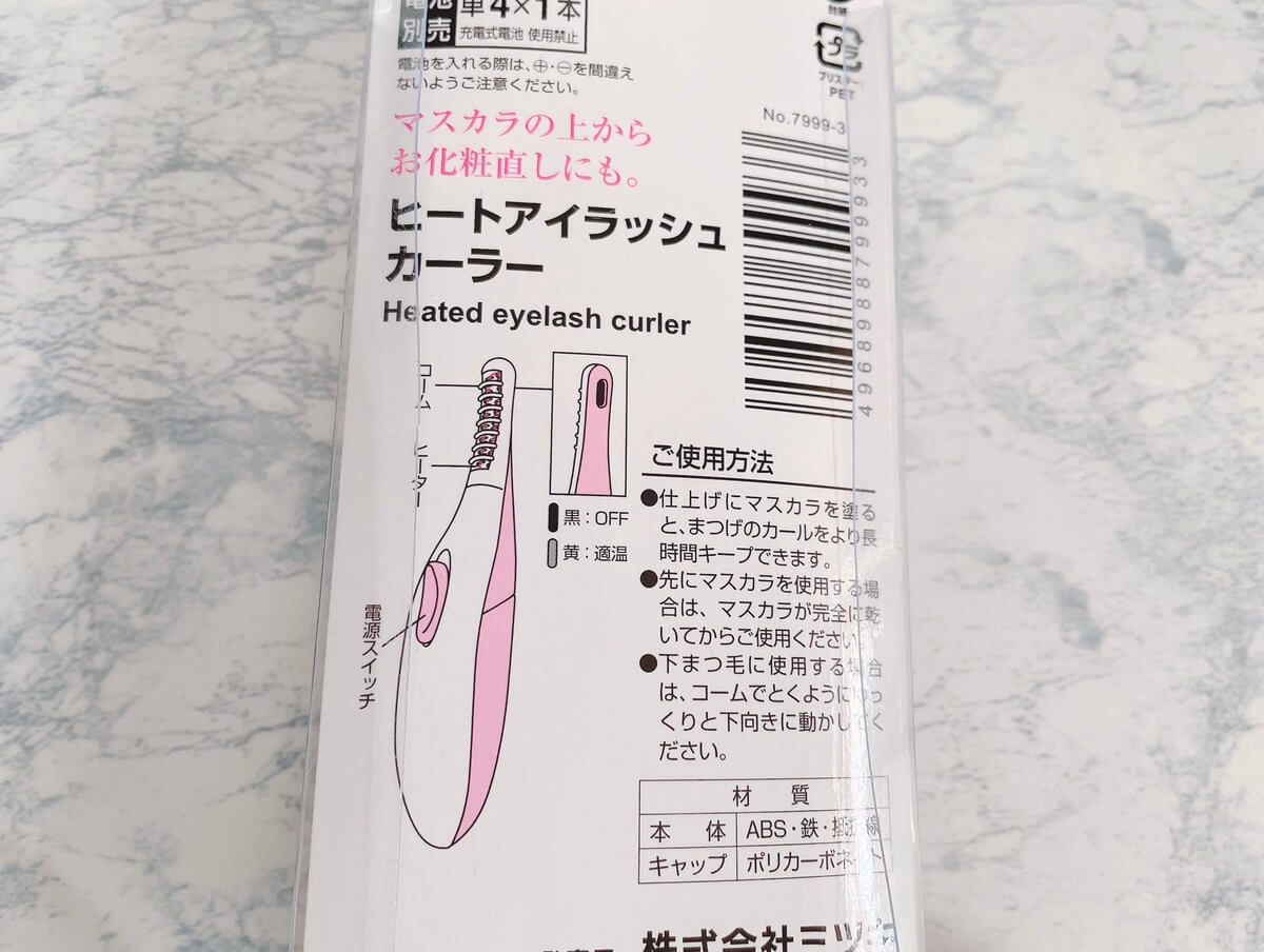 ダイソーの「ヒートアイラッシュカーラー」200円です。要はまつ毛のビューラーなのですが、ビューラーの様に挟んでまつ毛を持ち上げるものとは違い、ヒーターの熱でまつ毛のカールを作るアイテムです。