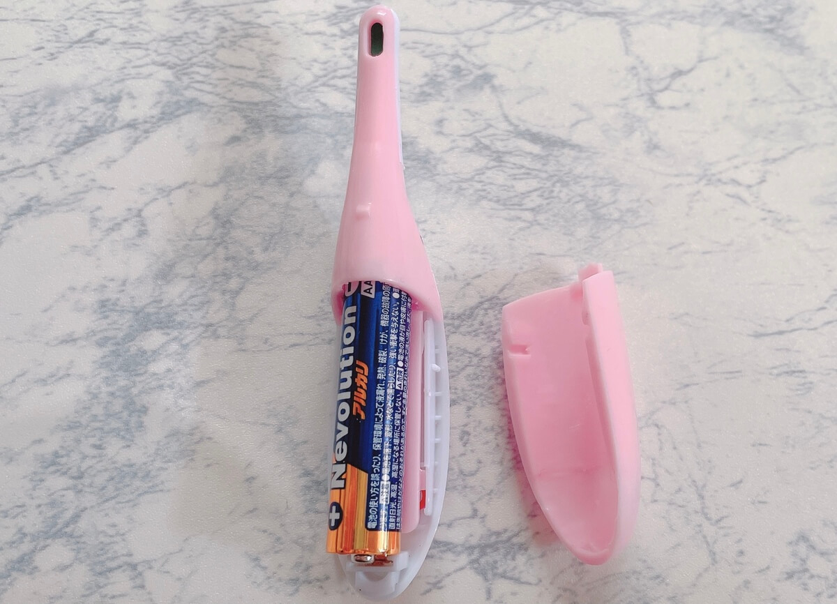 本体裏側の電池カバーをスライドして開け、単4電池1本を入れるだけで準備完了です。