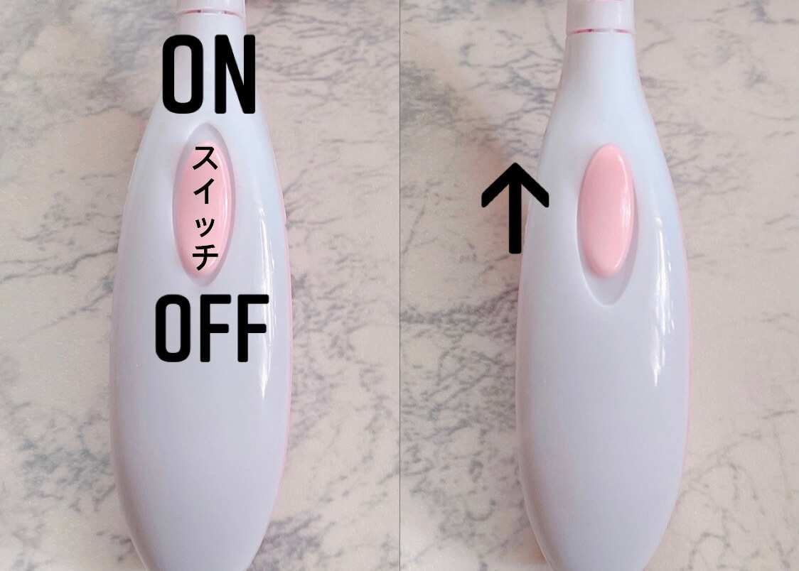 本体表側に電源スイッチがあります。上にスイッチを上げると電源が入ります。