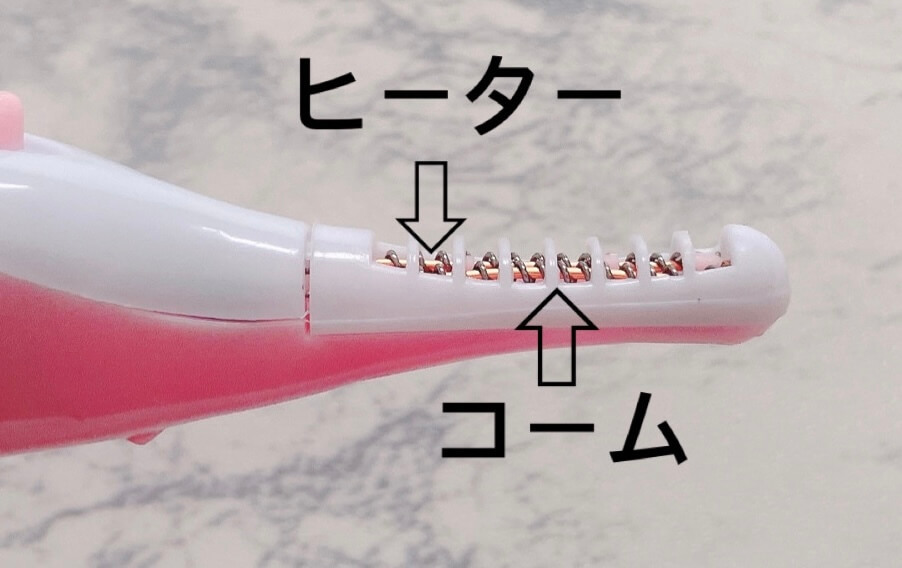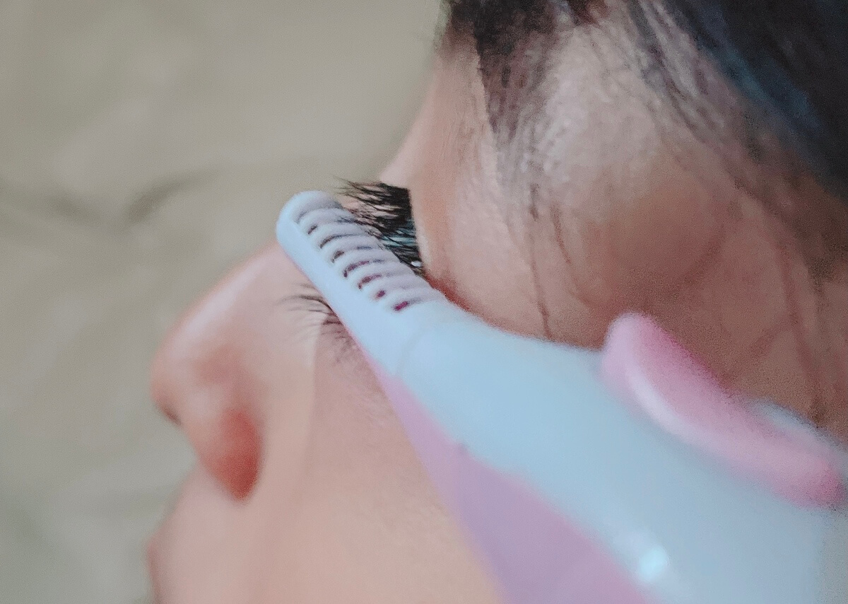 適温になったら肌にヒーター部分が触れないよう注意しながら、まつ毛をコーム部分に乗せてカールを作っていきます。