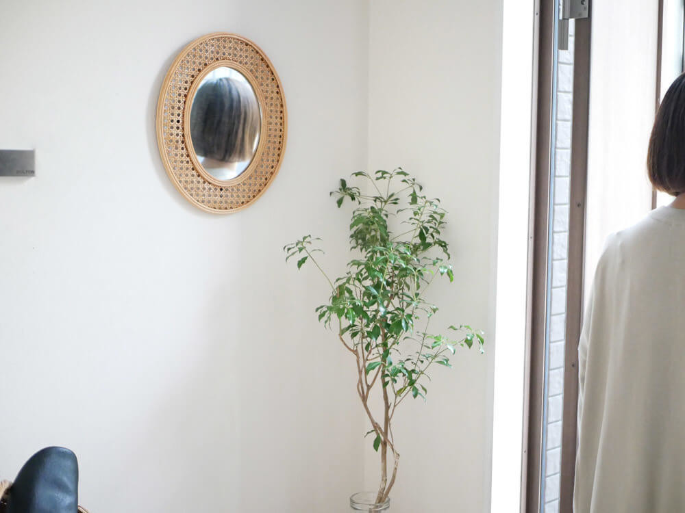 玄関に鏡を設置すれば、身だしなみチェックの他に光を反射し空間を明るくしてくれます。