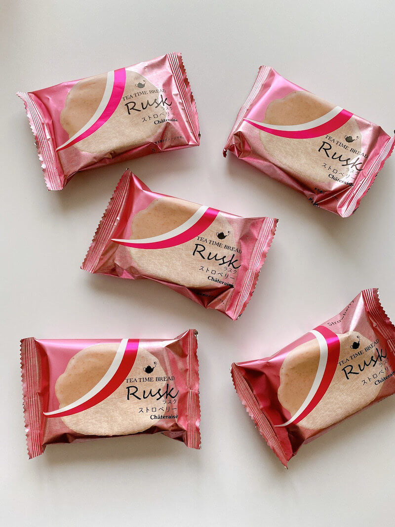 - ティータイムブレッドラスク ストロベリーチョコ 5袋入り400円