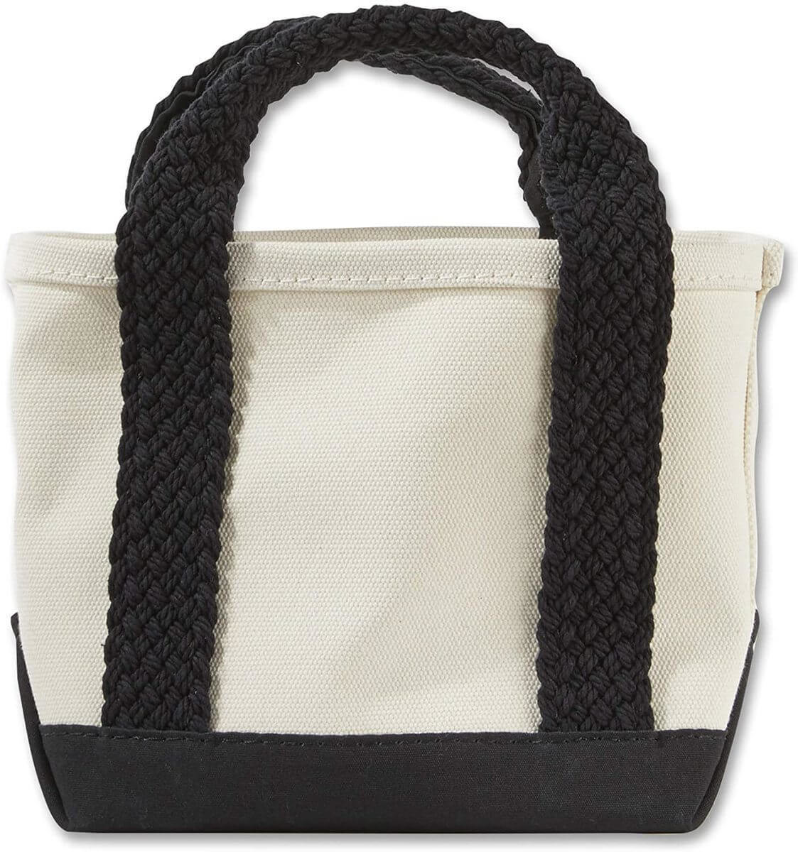 ロープ・ウェビングを採用した持ち手が特徴のミニ帆布トートバッグもおすすめ。 サイズは高さ19cm、幅19cm、マチ11cmと先ほどのものと比べると小ぶりです。