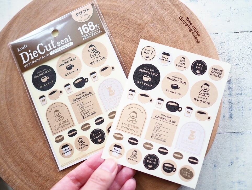 まず最初にご紹介するのは、クラフト素材がカフェ風でおしゃれな「クラフトダイカットシール コーヒーハウス」です。