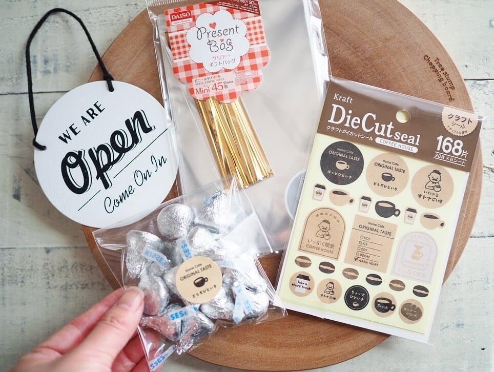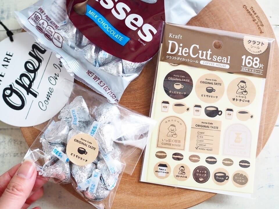 シンプルな透明袋にも、クラフト素材のシールを貼るだけでおしゃれな印象に♪
