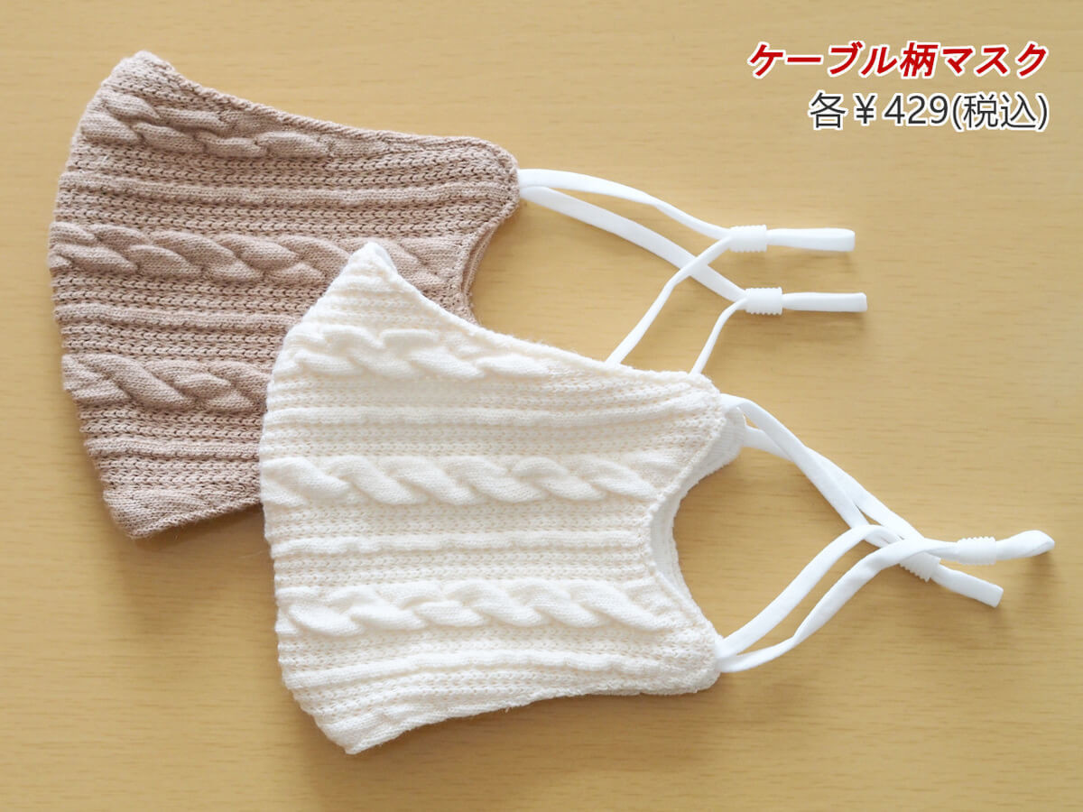 冬の着こなしによく似合うケーブルニット風のマスク。