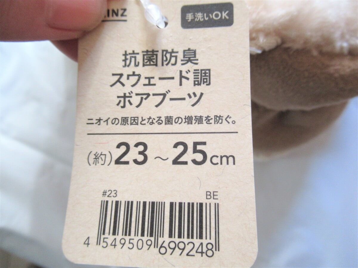 カインズの抗菌防臭スウェード調ボアブーツは、サイズが決まっています。
