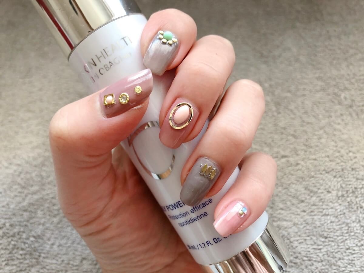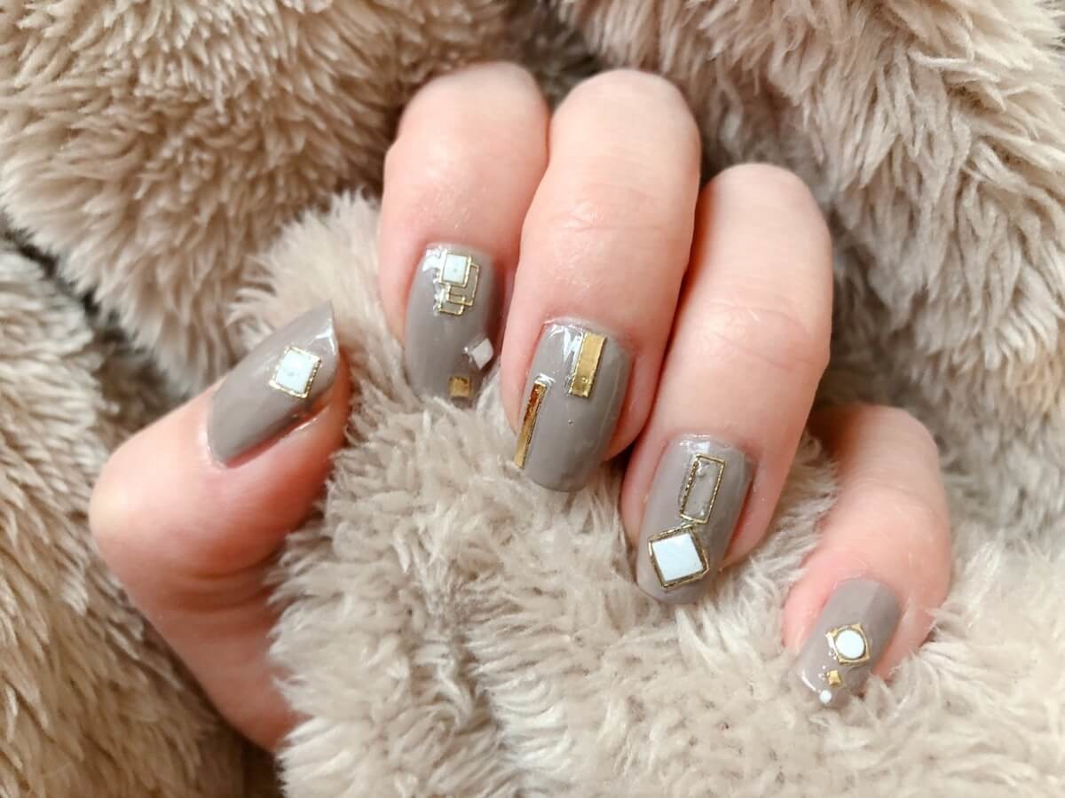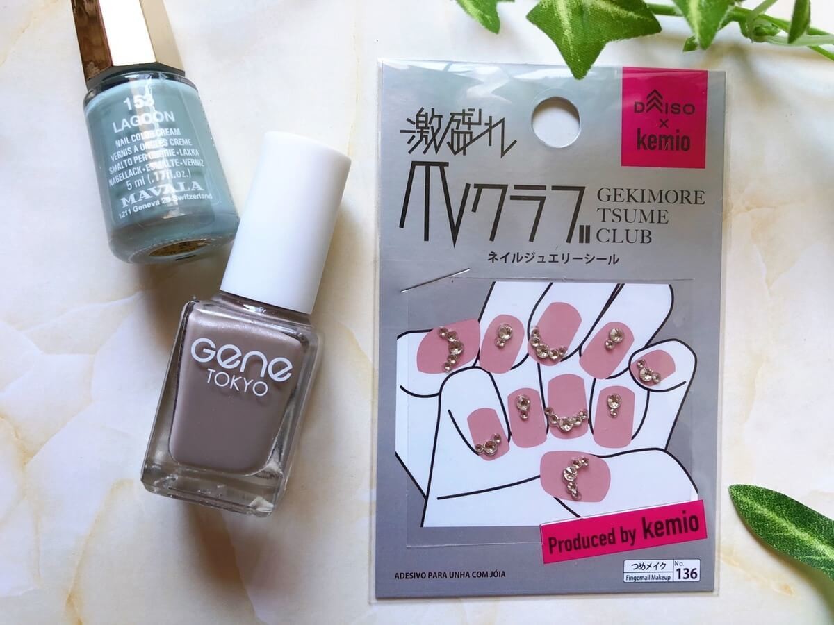 自分で言うのもなんですが、サロン級の仕上がり!ちなみに使っているマニキュアもダイソーです。まさかグレージュカラーを100均で買えるなんてびっくりしました。