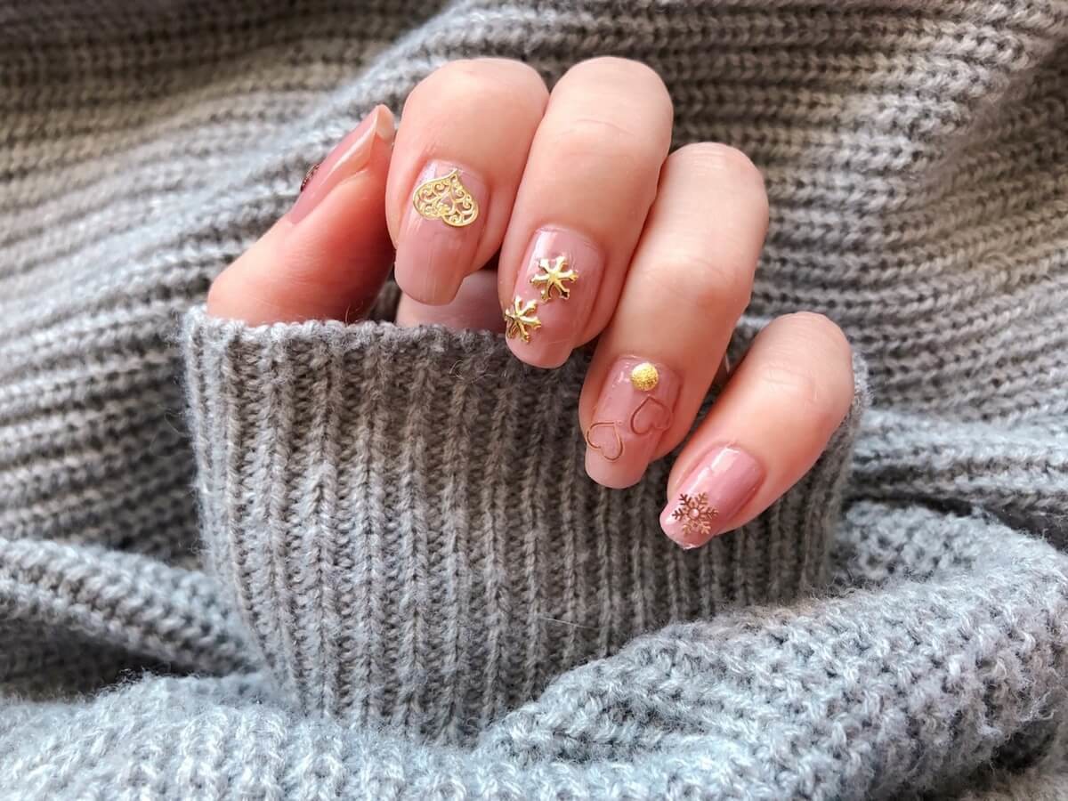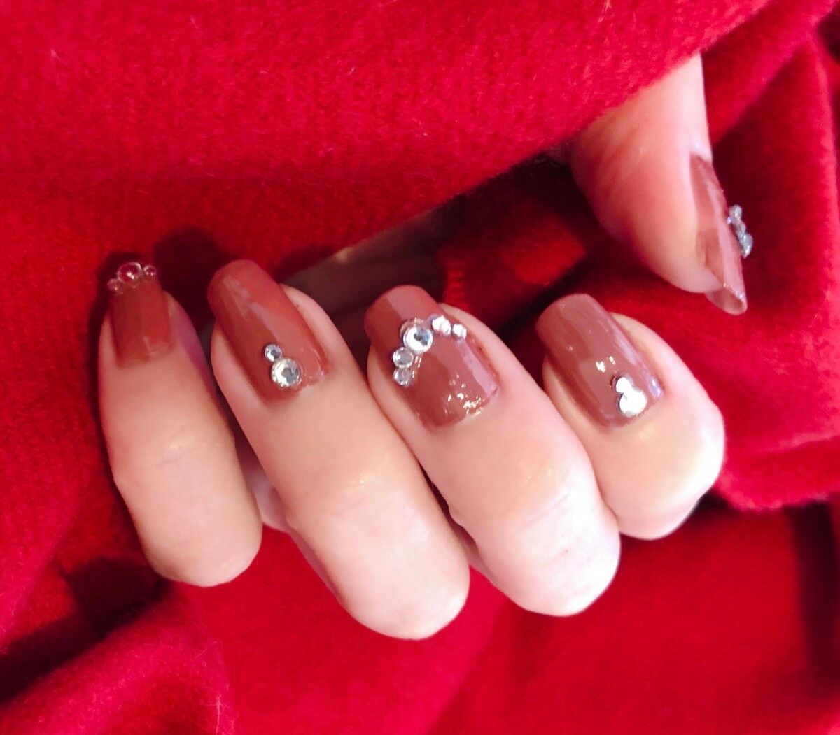 ピンク系のマニキュアに合わせたら、ガーリーな雰囲気に♡デートやとっておきの日にぴったりです。ベースのネイルカラーをブラウン系にしてパーツの数を控えめにすると、より大人っぽい仕上がりに♪