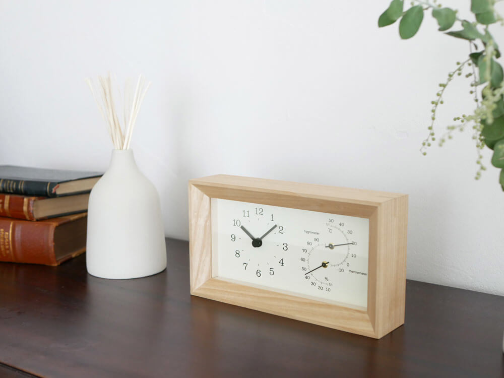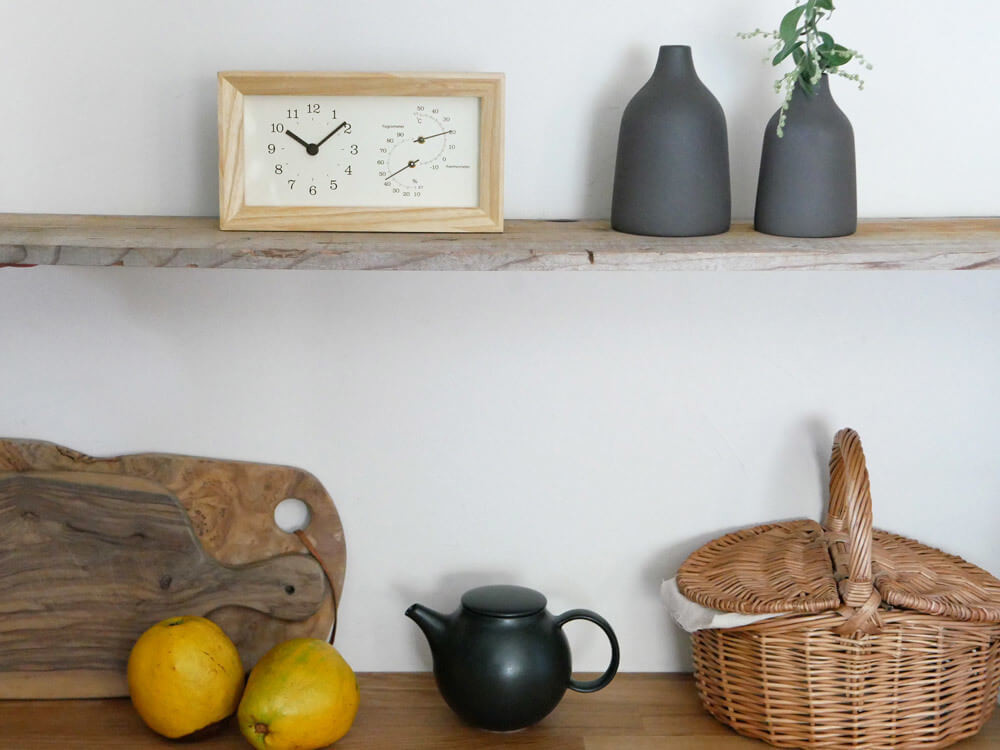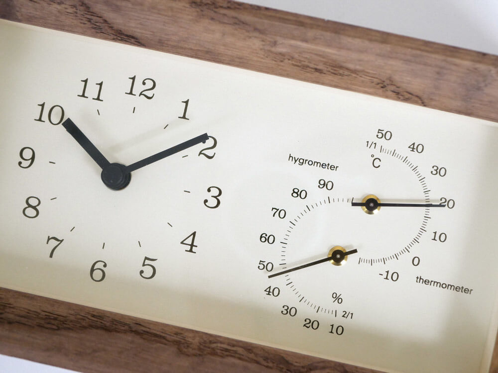 時計、温湿度計はお部屋の見える所に設置するので、インテリア性も重要ですよね。
