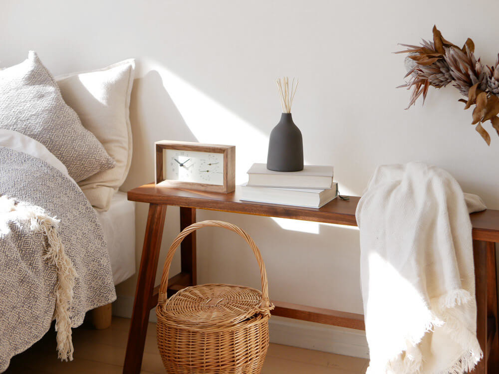 寝室のベッドサイドにそっと佇ませれば、木目のほっこり感が相まってよりくつろぎの空間へ。