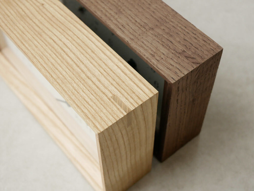 ナチュラルな質感と約横20× 高さ11×奥行4.6cmのスリムなサイズ感、そして安定したスクエア型の時計は、置く場所も選びません。