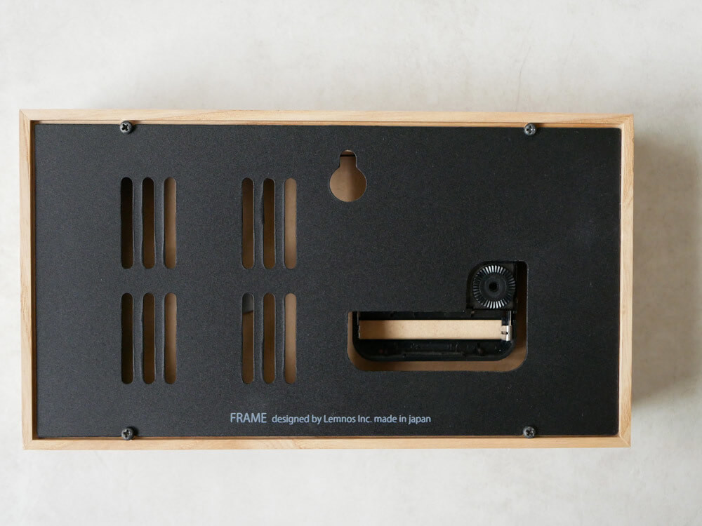 「レムノス FRAME」は、“時計は、時を刻み、そして空間を作り出す。”そんな想いから著名なデザイナーとプロジェクトを組み、シンプルでありながら美しく革新的デザインの時計を発表しているLemnos(レムノス)製。