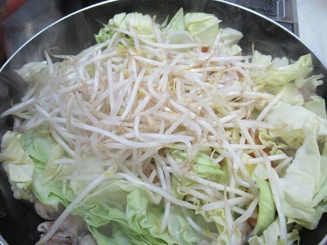 今回は、キャベツ・もやし・玉ねぎが冷蔵庫にあったので使用しましたが、他にもご家庭の冷蔵庫にある野菜を使用してくださいね。