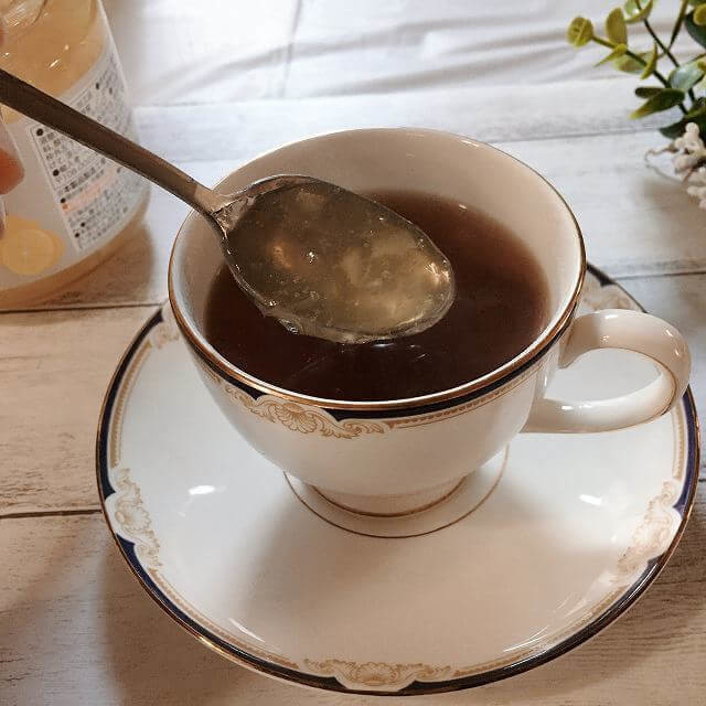 温かい紅茶に、カインズの蜂蜜レモンをティースプーン1杯ほど入れてみました。