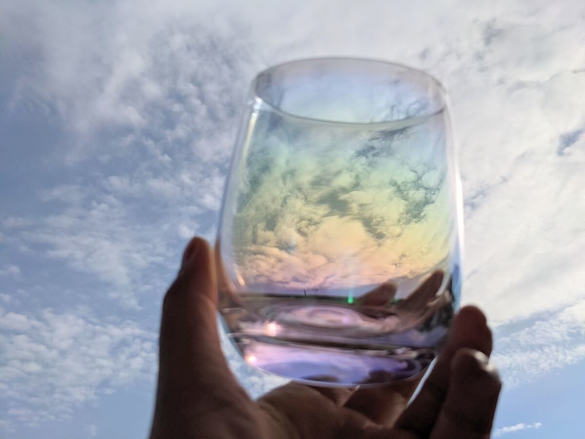空に向かってかざしてみると、虹のようなグラデーションを楽しめます。