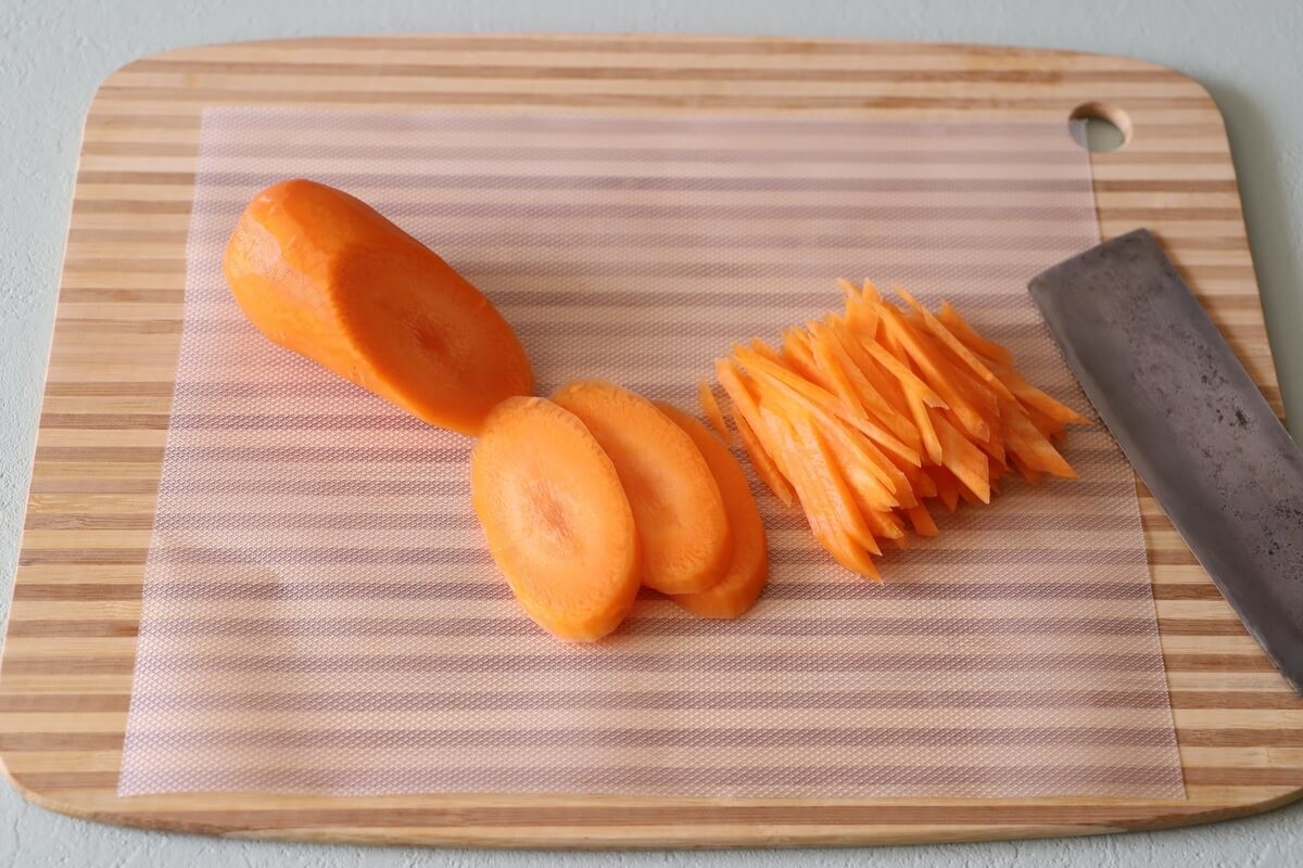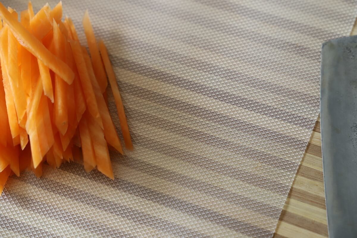 それなりに固いにんじんを切るときには力がいりますが、とんとんと包丁がシートにあたっても