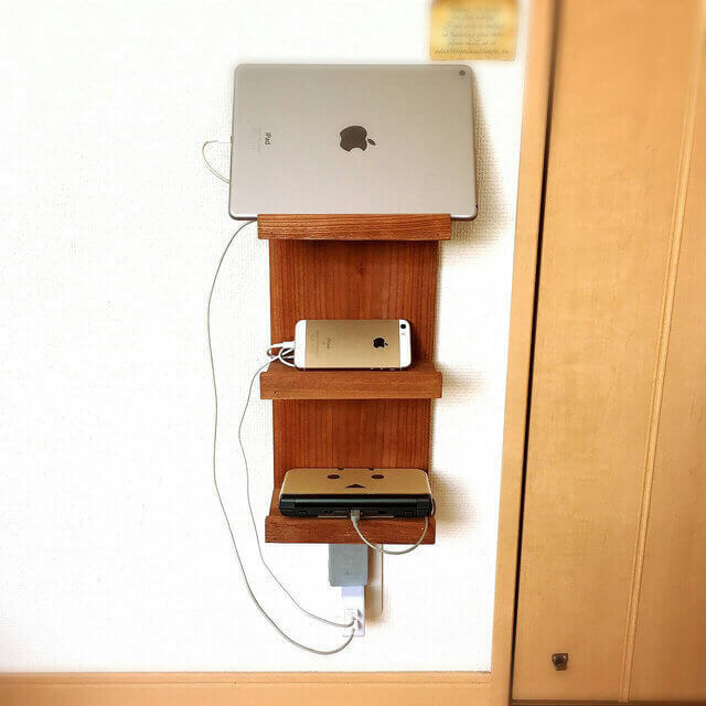 そんなとき、スッキリ収納してくれるのがこちらのコンセント上収納棚ラックです。コードも絡まる心配もありませんし、スマホやタブレッドなどを床に直置きすることが無くなり、踏んづけたりものを落としたりして液晶が割れる心配もありません。