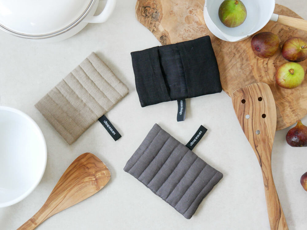 【sarasa design】ロゴ入りでオシャレ!指先の感覚でつかみやすい「リネン&キッチングリルミトン」