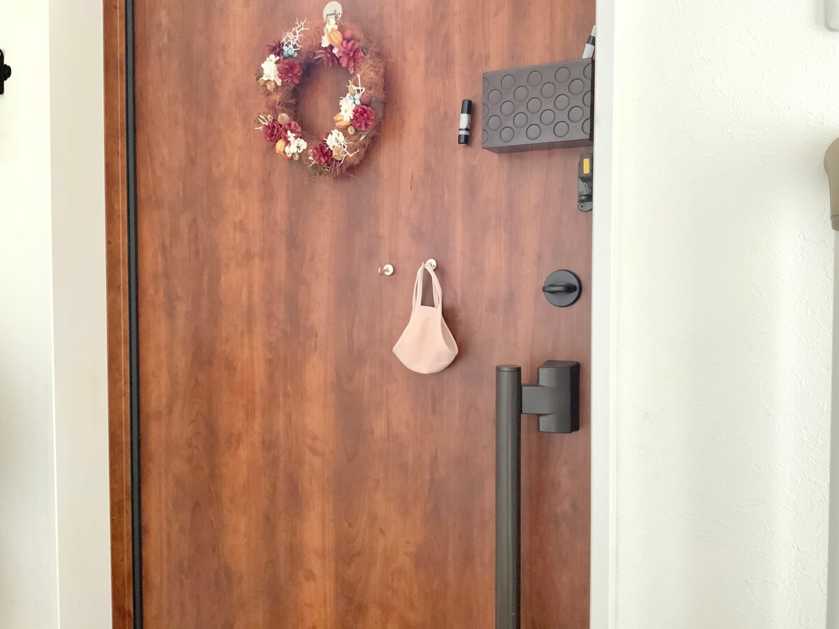 おすすめは玄関ドアにセリアのマグネットフックを取り付ける方法。