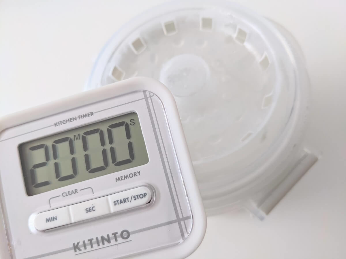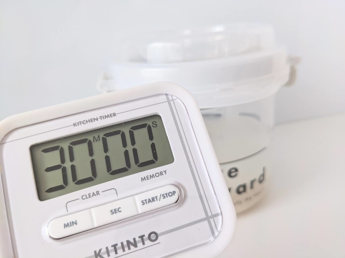 内蓋とロック式の蓋をしてから、今は冬場なのでそのまま30分浸します。 夏場であれば20分が目安です。