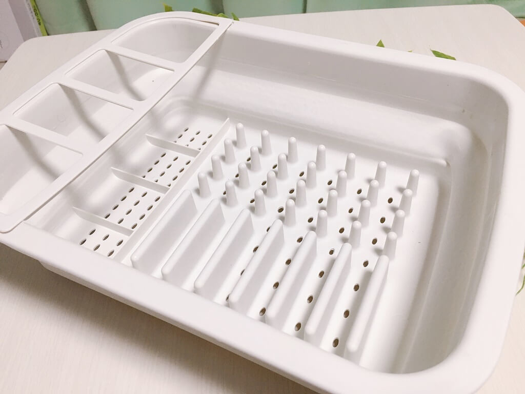 最近、水切りバスケから水切りマットに変えたばかりなんですが、洗い物が多いときなどはやっぱりバスケの方が 便利。