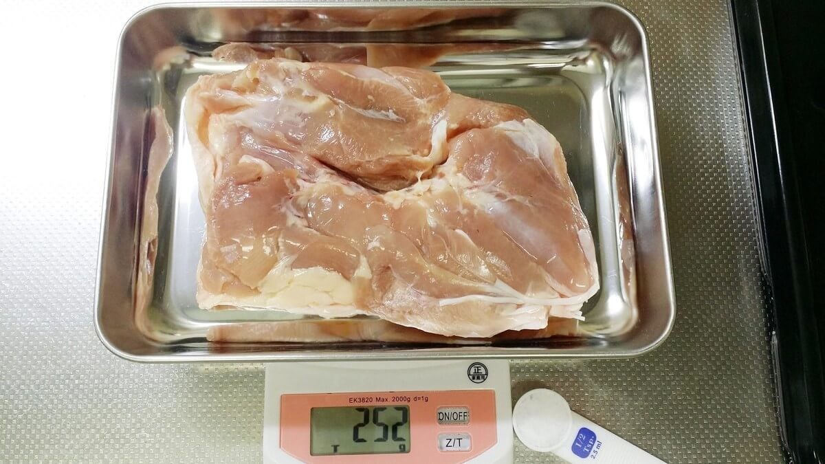 鶏もも肉と肉の重さの1%の塩を準備します。