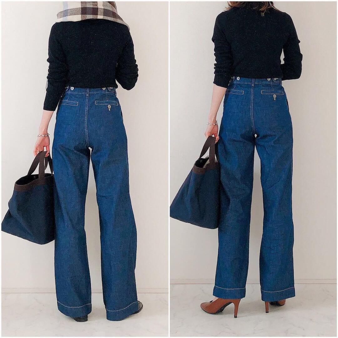 「ワイドフィットジーンズ」はサイドとバックから見ても、ストンと落ちるシルエットがきれい♪