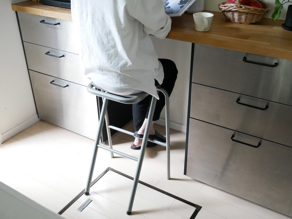 キッチンでは、調理中の休憩や、ちょっとした作業用にあると便利なスツール。