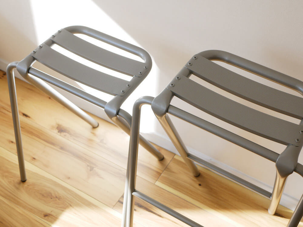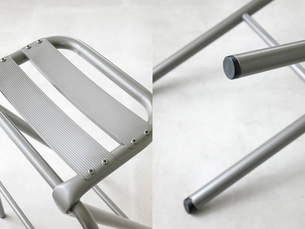 フレームはスチール素材、座面にはアルミニウム素材を使用。