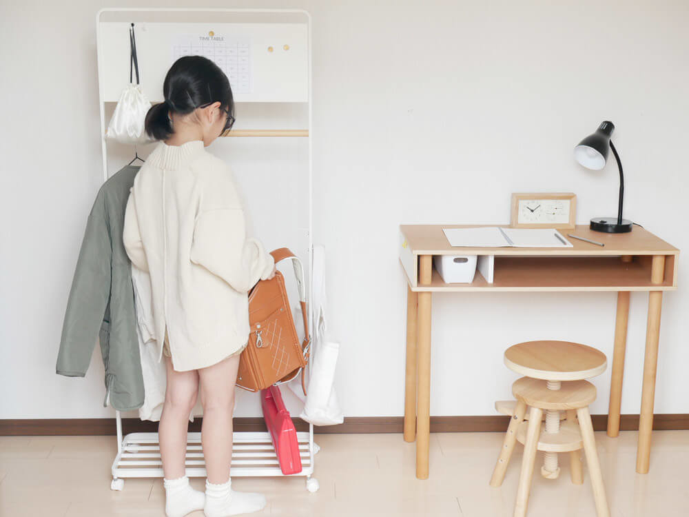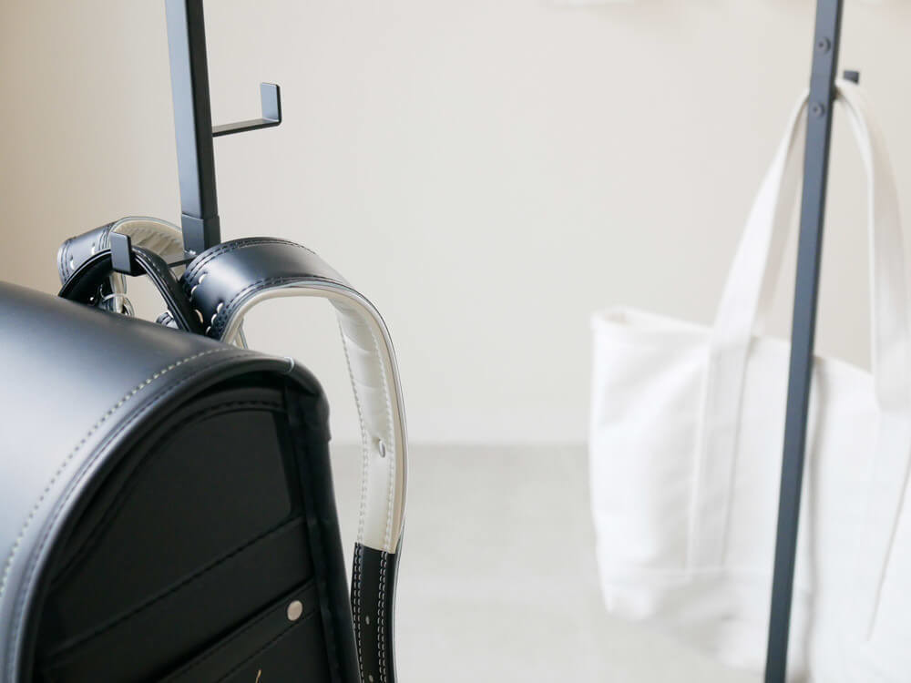 ランドセル、制服、時間割りを揃えて収納できる「ハンガーラック」。