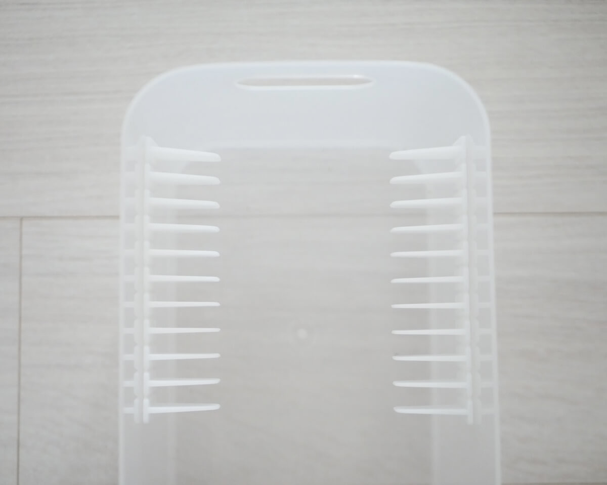 ダイソーのボックスとダイソーのブックスタンドはとても相性が良いです。ボックスの中をさらに仕分けしたい時に使えます。